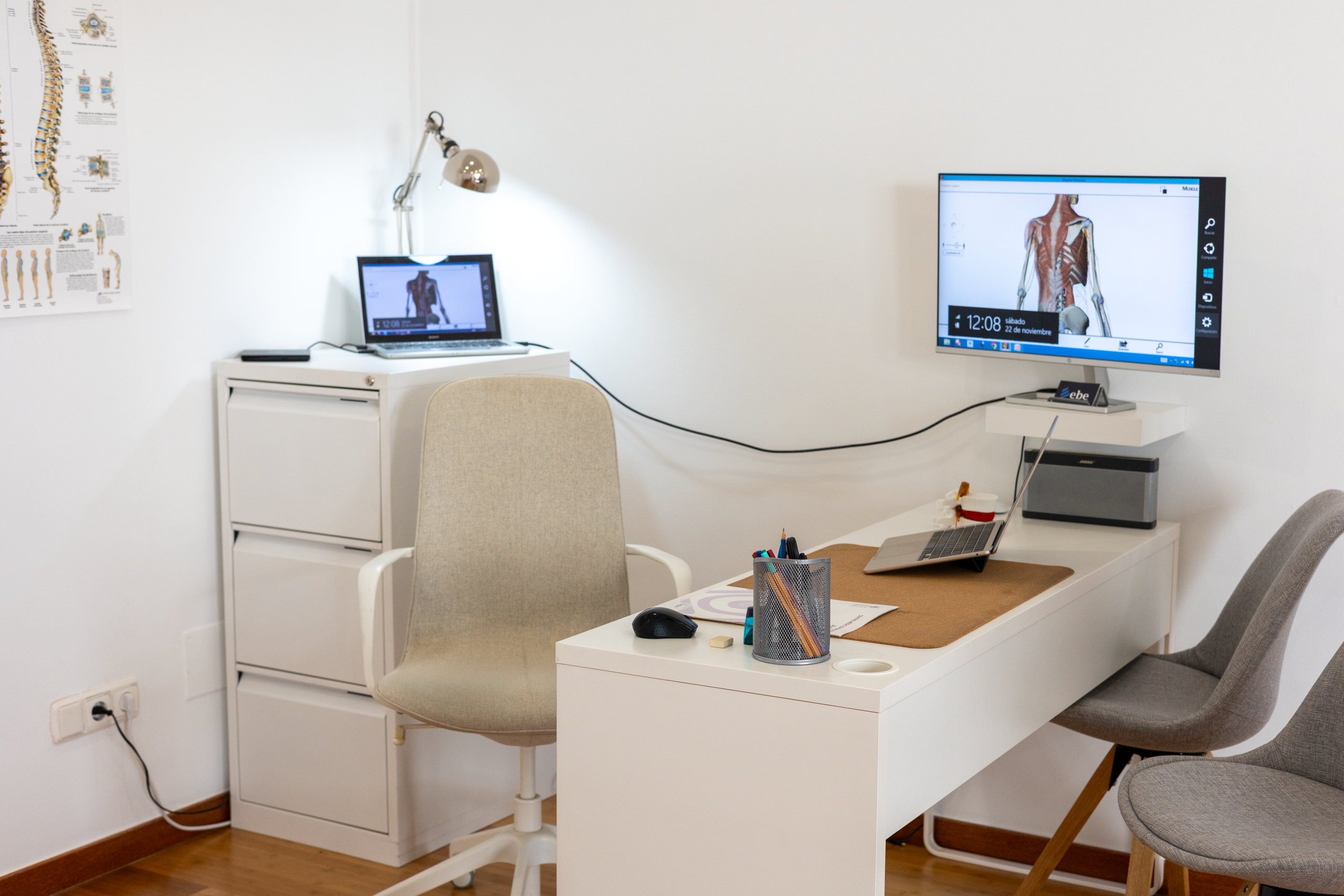 Aquest espai està especialment dissenyat per crear un entorn privat entre pacient i tècnic, on es doni la intimitat i la tranquil·litat necessàries per entendre a la perfecció cada cas i assegurar una avaluació correcta que permeti el disseny d’un programa d’exercici eficaç i segur, adaptat a la realitat de cada pacient. A més de disposar d’eines que permetin al pacient entendre quina és la seva situació i quin enfocament de recuperació donarem al seu cas particular.